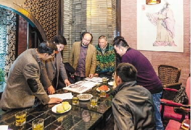 对着山水画册,大家为将来的富春三馆提点子想创意。吴昱 摄