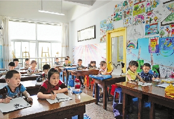 在钱清镇文化体育中心,孩子们在上绘画兴趣班。