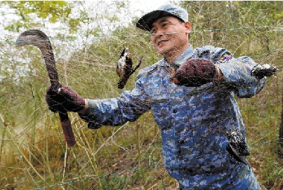 看着无辜小鸟惨死在网上,老徐十分痛心,几刀便将毒网劈碎。