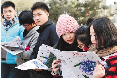艺术节开幕式上,不少观众传阅美术报。 本报记者 潘良干 摄