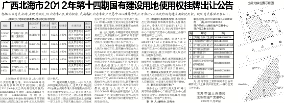 广西北海市2012年第十四期国有建设用地使用权挂牌出让公告