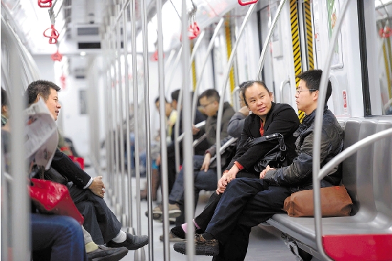 早高峰期间的地铁车厢内几乎人人有座。记者 董旭明 摄