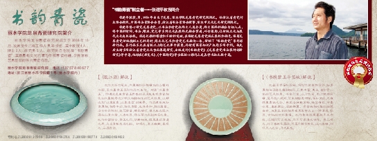 丽水学院龙泉青瓷研究院成立于2008年10月,发展至今已有工作人员20余名,其中教授4人,博士2人,研究员5人。研究院自创品牌“书韵青瓷”,其意是将文化元素与传统青瓷相融,孕育富有艺术品位的系列青瓷作品。