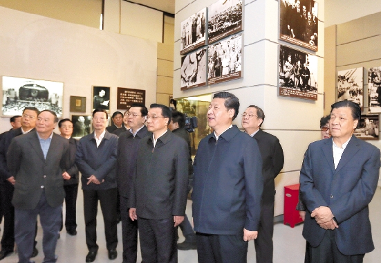 | 11月29日,中共中央总书记、中央军委主席习近平和中央政治局常委李克强、张德江、俞正声、刘云山、王岐山、张高丽等来到国家博物馆,参观《复兴之路》展览。 新华社记者 鞠鹏 摄 |