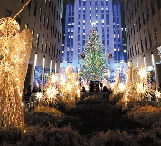 11月28日,纽约洛克菲勒中心举行迎接圣诞季和新年圣诞树亮灯仪式,点亮一棵挂满彩灯高达80英尺的挪威云杉圣诞树。 新华社记者 王雷 摄
