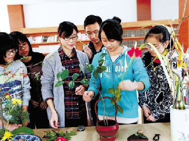 学插花。