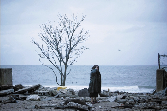 10月30日,在美国纽约希捷社区,一名女子站在被飓风“桑迪”损毁的街道上。 新华社发