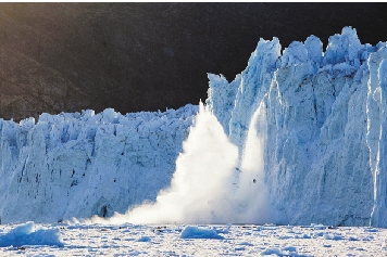 格陵兰伊卢利萨特,一座冰山冰块下落,激起巨浪。 视野网供图