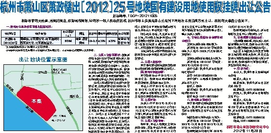 杭州市萧山区萧政储出〔2012〕25号地块国有建设用地使用权挂牌出让公告