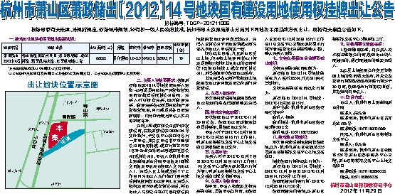 杭州市萧山区萧政储出〔2012〕14号地块国有建设用地使用权挂牌出让公告