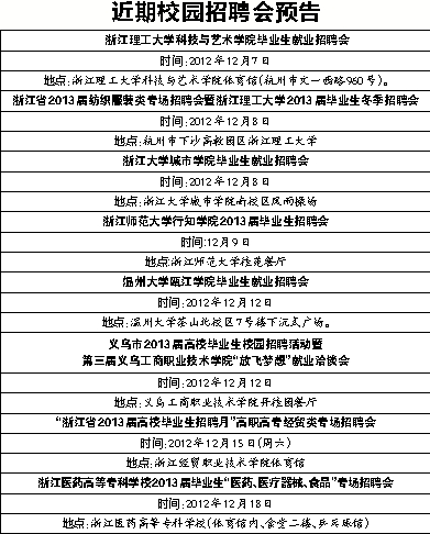 | 浙江省2013届纺织服装类专场招聘会暨浙江理工大学2013届毕业生冬季招聘会 |