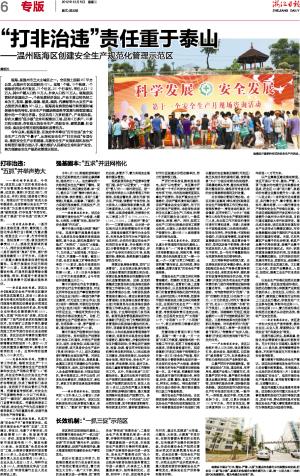 今年以来,瓯海区委、区政府牢牢牵住“打非治违”这个安全生产工作的“牛鼻子”,从深化安全生产“打非治违”专项行动、推进安全生产示范创建、完善安全生产长效机制和加快产业转型升级等方面入手,着力维护人民群众生命和财产安全,努力创建安全生产规范化管理示范区。
