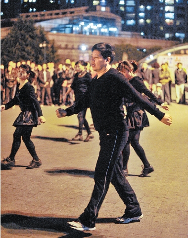 在运河广场的排舞人群里,范日星讲述了排舞的功效。“跳了两年了,以前184斤,现在158斤,减得很成功。做生意上货下货很累的,现在真的觉得轻松多了,这些都是排舞的功劳。” 陈熙春 摄