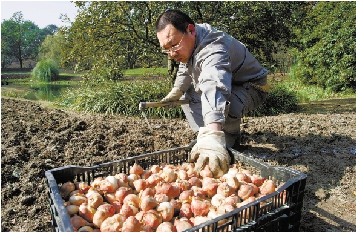 12月6日,50万个郁金香种球开始在杭州太子湾公园播种,这些种球共有50多个品种,全部由荷兰进口,经过园林工人消毒、施肥、翻土等细心呵护,明年3月份就能开花供游人欣赏。 记者 李震宇 摄