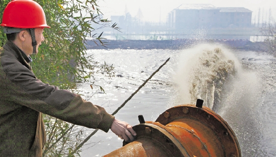 12月7日,全国中小河流治理重点县德清项目区在全省率先开工。德清县计划用4年时间对全县县乡河道进行集中连片整治。图为在该县三合乡四都村一条河道上,疏浚吸淤泥船正在作业。 宣宏 摄