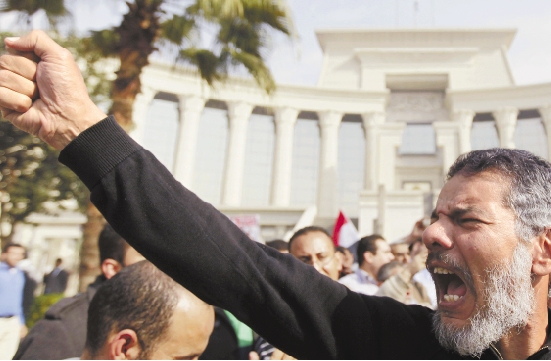 在埃及首都开罗的最高宪法法院外,埃及总统穆尔西的支持者举行集会游行。 新华社发