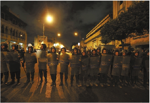 12月5日,在埃及首都开罗,防暴警察站成一排将冲突中的埃及总统穆尔西的支持者与反对者分开。 新华社发
