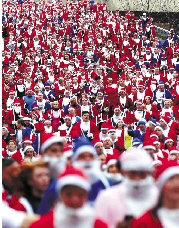 12月2日,在英国北部城市利物浦,人们身穿圣诞老人装束,参加圣诞老人长跑活动。 新华社发