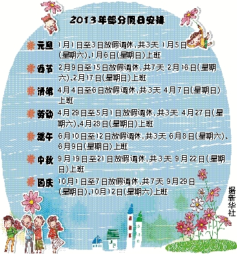 2013年部分假日安排