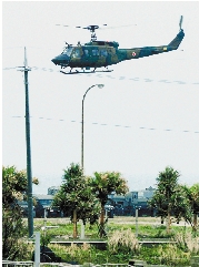 12月12日共同社提供的照片显示,日本自卫队的一架直升机在冲绳石垣岛起飞。 新华社发