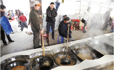 近日,东阳市画水镇许宅村榨糖作坊正在忙着熬制红糖。秋冬加工红糖在东阳、义乌一带有着悠久历史,并保留着原始的制作工艺。 通讯员 包康轩 摄