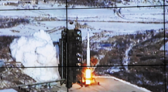 朝中社12日提供的照片显示,搭载朝鲜“光明星3号”卫星的“银河3号”运载火箭发射升空。 新华社发
