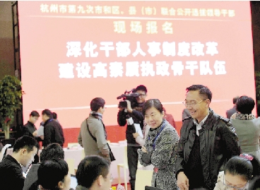 杭州第九次联合公开选拔领导干部日前开始,本次联合公选共推出110个职位。图为报名现场。 董旭明 摄