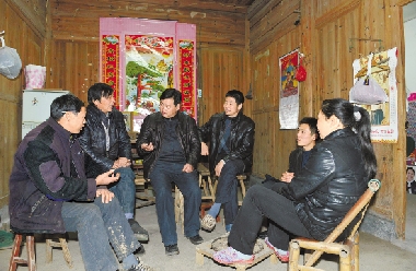 在贯彻落实十八大精神中,淳安县推出县乡党员干部夜访农户制度。12月13日夜,千岛湖镇工作人员在农户宋明泽家宣讲十八大精神。 通讯员 徐小晟 摄