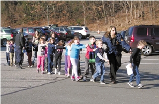 枪击案发生后,警察带领学生们疏散。 新华社发