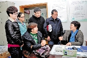 社工顾亚芳(右)接待居民咨询。