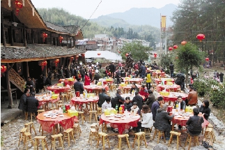 游客们已经按捺不住好奇,早早地入席等待农家宴开席,身处乡野地,品尝农家宴,一定是别样的感觉。 何学锋 摄