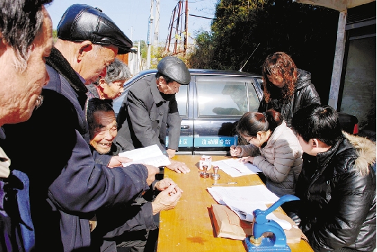 云湖社区流动服务车,在包山垟村受到群众欢迎。 雷忠义 摄