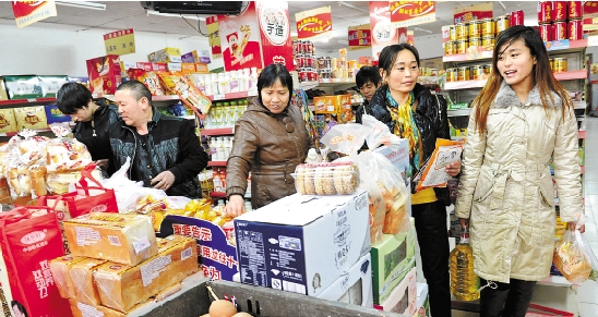12月16日,萧山区新塘街道塘里陈社区的居民和外来务工者在新益佳连锁超市购买商品。截至目前,萧山有168家农家小超市实施了标准化改造,经营环境、店堂面貌有了很大提升,使农民家门口就能享受都市的便利生活。