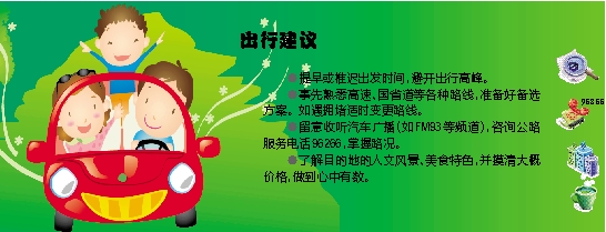 ●留意收听汽车广播(如FM93等频道),咨询公路服务电话96266,掌握路况。