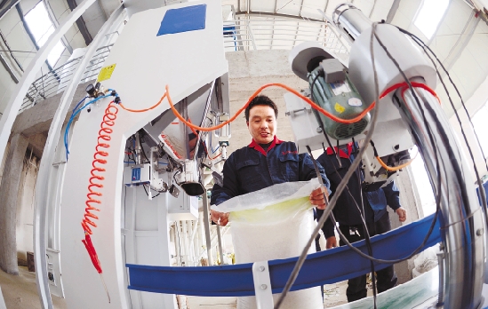 12月19日,义乌市飞扬农机专业合作社承包的2050亩省级粮食生产功能示范区首批新鲜大米“出炉”。图为工人们将一袋袋无公害大米打包。 本报记者 李震宇 通讯员 张建成 吴江平 摄