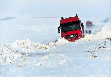 这是12月20日在新疆哈密地区巴里坤哈萨克自治县境内省道S303线拍摄的被风雪围困的车辆。连日来,新疆哈密地区巴里坤哈萨克自治县下涝坝乡境内省道S303线、S238线路段多处遭遇暴风雪袭击,致800多辆车受困、1000余人滞留。经过40多小时的连续救援,除部分事故车辆外,大部分车辆及人员均转移至安全地带。 新华社发(张建刚 摄) |