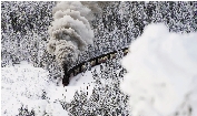 | 在德国北部韦尼格罗德附近,一列火车在雪景中穿行。 新华社发 |
