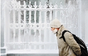 | 在俄罗斯首都莫斯科,一名男子经过一处结满冰霜的栅栏。 新华社发 |