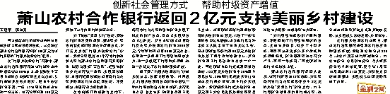 萧山农村合作银行返回2亿元支持美丽乡村建设
