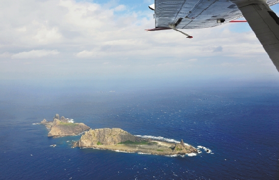 这是从中国海监B-3837飞机上拍摄的钓鱼岛及其附属岛屿画面。 新华社发