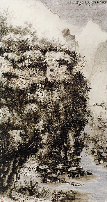 | 暮雨丙安城 (中国画180×90cm) 刘后旺 中国山水画以大自然景物为写照,但是与油画风景注重焦点透视不同的是,传统山水画有一套特殊的艺术表现手法——散点透视,可以将多个视野内的风光并入同一画图之中。所以,无论描绘高峡平湖的雄伟壮阔,还是展示小桥流水的幽深雅致,山水画通过笔墨晕染、描摹,给人以视觉上的美感之外,还营造出引人想象的丰富空间。刘后旺的国画《暮雨丙安城》就是这样一幅散点透视为主的典型作品。画家取俯视的视角,通过远近、高下、虚实、藏露的精心安排,描绘了峡江之畔高筑城池的雄伟景色。在茂密林木的掩映之中,险峻的山峰苍劲雄伟,城池楼阁参差。并以独特的皴法,渲染出风雨淋漓,描绘出山光水色、朴茂静穆的山水图景,画外有画。虽然不见一人,但画面给人以丰富的想像空间。体现了“碧山深处绝纤埃,面面轩窗对山开”的自然意境。 (潘欣信) |