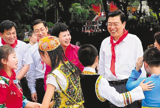 2012年5月30日,张德江在重庆与少年儿童共庆“六一”国际儿童节。