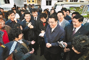 2005年11月3日,李克强在抚顺与棚户区改造搬进新居的群众亲切交谈。