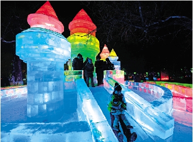 12月28日,孩子们在冰灯艺术游园会上游玩。当日,第39届中国·哈尔滨冰灯艺术游园会在高空焰火与LED天幕交相辉映下盛装开启,2000余件冰灯艺术精品炫彩亮相。哈尔滨冰灯游园会创办于1963年,迄今已成功举办38届。 新华社记者 王凯 摄 |