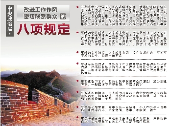 10、图表显示中央制定改进作风八项规定内容。 新华社发