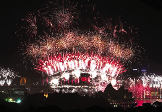 12月31日,在澳大利亚悉尼,新年焰火在夜空绽放。当日是2012年的最后一天,世界各地举行庆祝活动,迎接新年的到来。 新华社发
