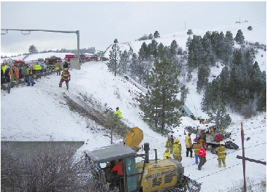 12月30日,在美国俄勒冈州彭德尔顿以东的84号州际公路路段,救援人员在旅游大巴交通事故现场工作。 美国俄勒冈州一辆旅游大巴当天上午发生严重交通事故。事故发生在结冰路段,由于车辆失控,这辆大巴冲出公路护栏,并沿着路堤向下翻滚了数十米。事故造成5人死亡,另外还有20多人受伤。 新华社发 |