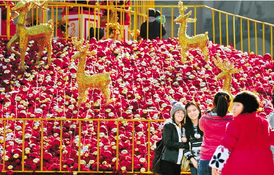 在宁波市天一广场商圈里,一处以“喜迎新年”为主题的景观创意设计,吸引了众多市民和游客的眼球。
