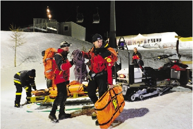1月5日,在意大利北部的切尔米斯山滑雪场,来自山地救援和消防部队等方面的救援人员参与救援。1月4日晚间10时左右,意大利北部特伦蒂诺-上阿迪杰大区切尔米斯山滑雪场在海拔2000米的雪道上发生雪地摩托倾覆事故,造成6人死亡、两人重伤。事故受害者均为来意大利滑雪度假的东欧游客。 新华社发 |