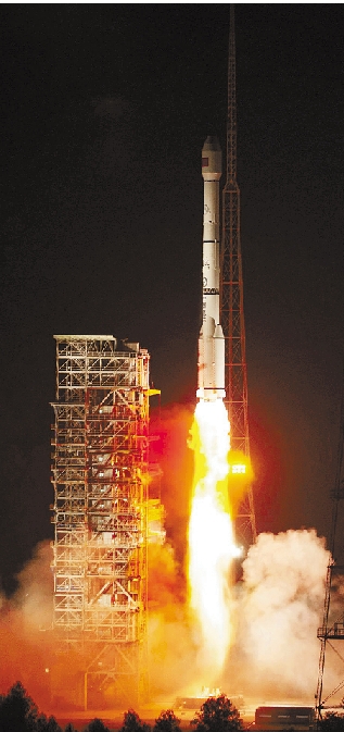 10月25日23时33分,我国在西昌卫星发射中心用长征三号丙运载火箭,成功将一颗北斗导航卫星发射升空并送入预定转移轨道。 新华社记者 刘潺 摄